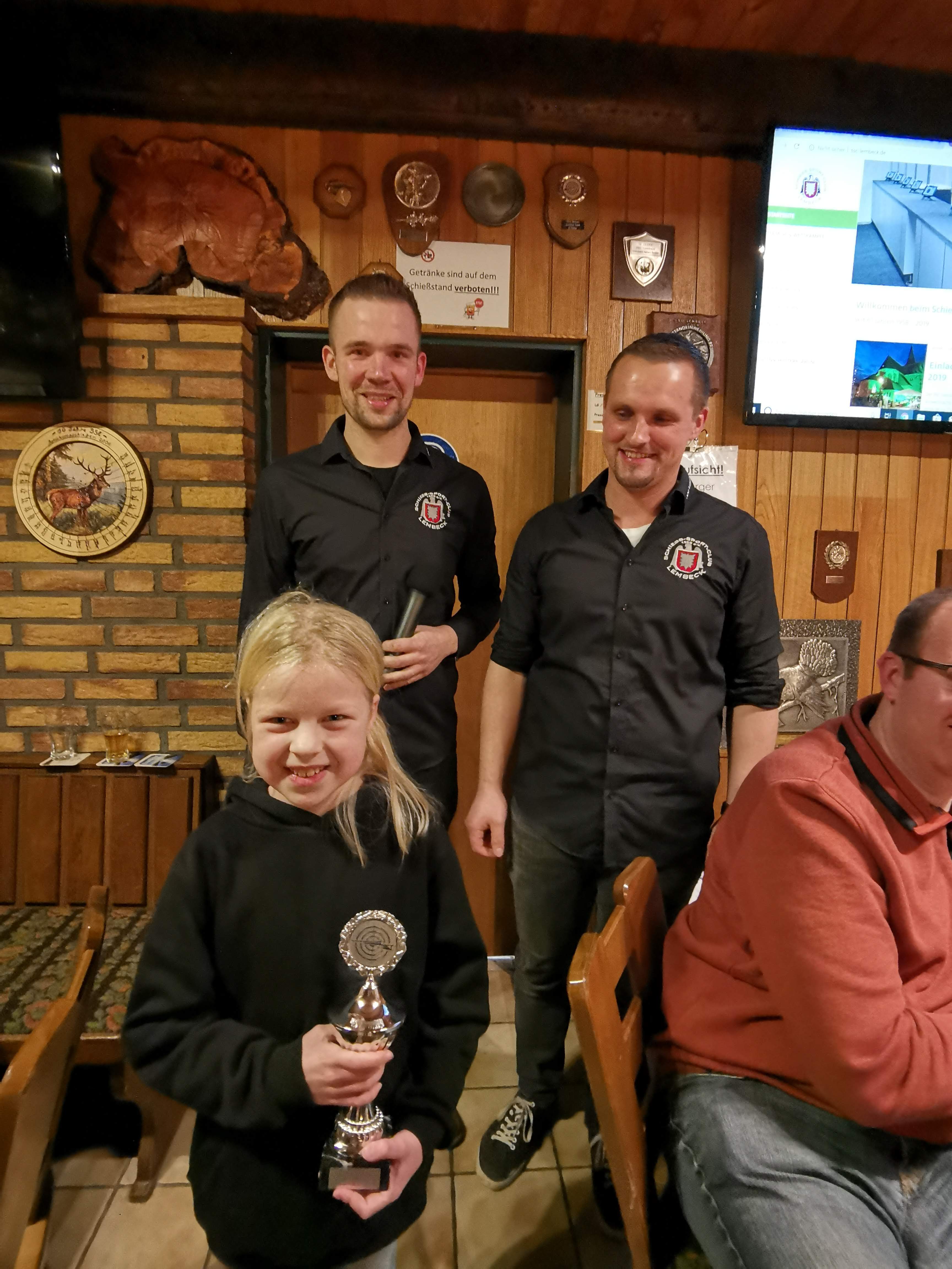 Gleich in der ersten Saison nahmen Klara Hüls, Bernhard Hüls und Vincent Schultejann an der Vereinsmeisterschaft und am Vereinspokalschießen teil. In beiden Disziplinen sicherte sich Klara Hüls souverän den 1. Platz. In dieser Altersklasse wird mit einem Lasergewehr gezielt, so dass hier auch junge Schützinnen und Schützen unter 12 Jahren bereits teilnehmen können. Weitere Konkurrenz fürchtet die Gruppe der „Winnis“ nicht, Interessierte können montags und freitags (ab 18.00 Uhr) gerne zu einem Probetraining vorbeischauen. Gleiches gilt natürlich auch für Interessierte in allen anderen Altersgruppen: Mit dem preisgünstigen Schießsport kann in jedem Alter begonnen werden.